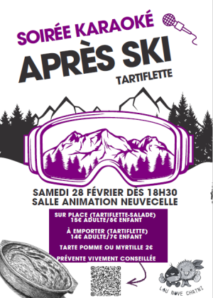 Prêt pour le grand saut ? Rejoignez-nous le 28 février dès 18h30 à la salle d'Animations de Neuvecelle pour une soirée Tartiflette & Karaoké de folie !