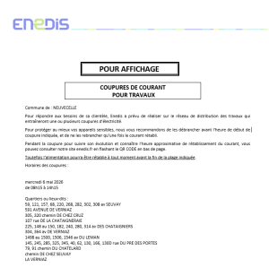 Pour répondre aux besoins de sa clientèle, Enedis a prévu de réaliser sur le réseau de distribution des travaux qui entraîneront une ou plusieurs coupures d’électricité.