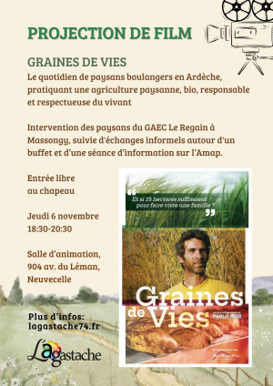 Intervention des paysans GAEC Le Regain à Massongy, suivie d'échanges informels autour d'un buffet et d'une séance d'informations sur l'AMAP.