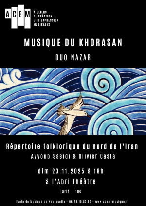 L'ACEM, l’école de Musique de Neuvecelle, accueille l'artiste iranien Ayyoub Saeidi pour un Concert exceptionnel, à l'Abri Théâtre, le dimanche 23 novembre à 18h.