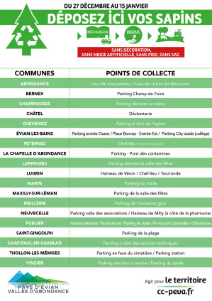 Recycler son sapin de Noël constitue une démarche citoyenne efficace. La communauté de communes propose chaque année aux habitants de déposer leur sapin dans l’un des points de dépôt répartis sur le territoire. Ces sapins sont ensuite acheminés au site du méthaniseur à Vinzier où ils seront transformés en compost pour les agriculteurs locaux.